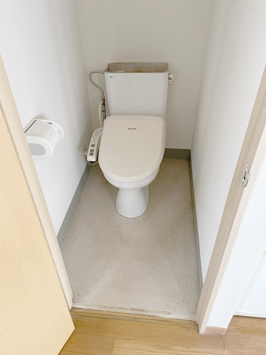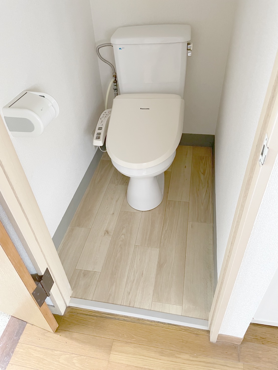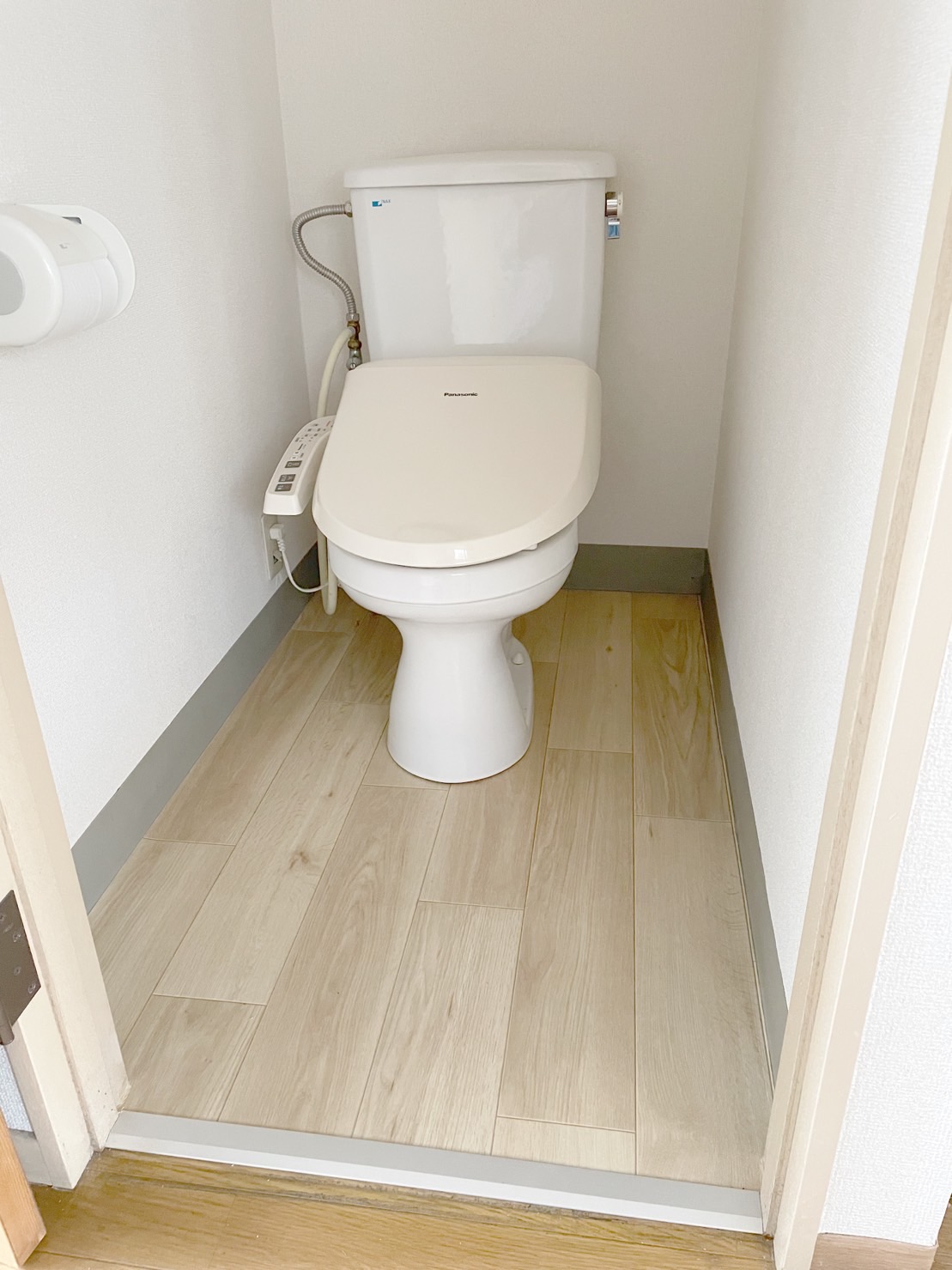 通常はトイレの便器はそのままで貼るのですが、